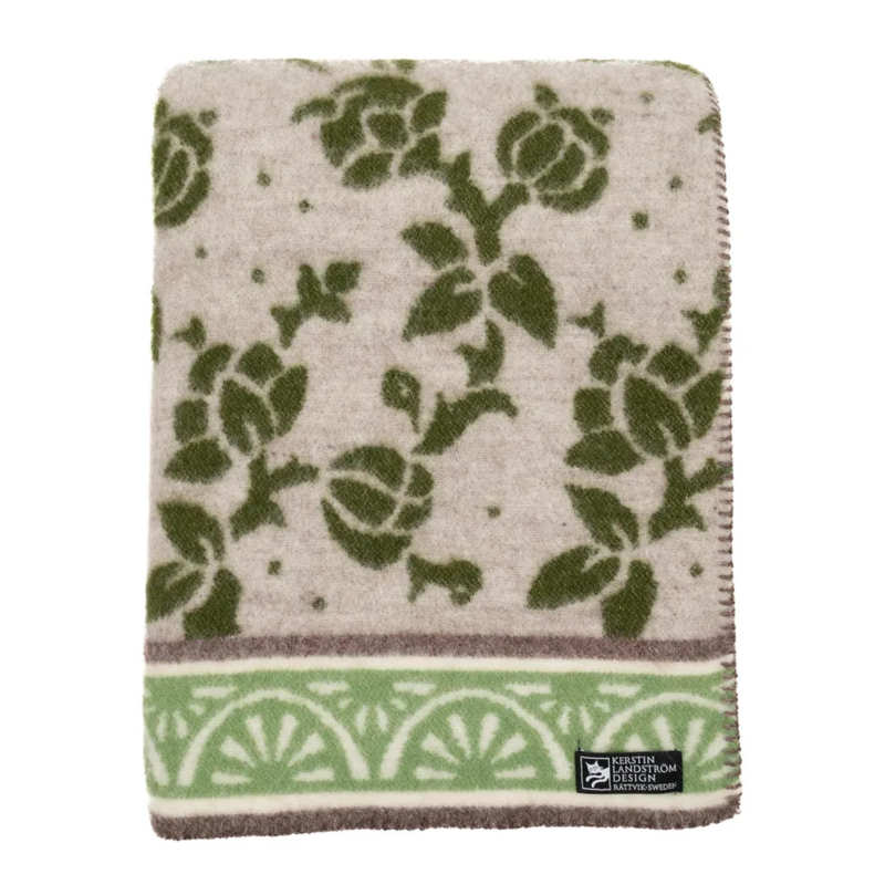 OverzichtDe wollen JUGEND deken heeft een patroon dat geïnspireerd is op een behang uit 1920 dat gevonden is in het Erik-Anders Werelderfgoed boerderij in Söderala, Hälsingland in het noorden van Zweden.